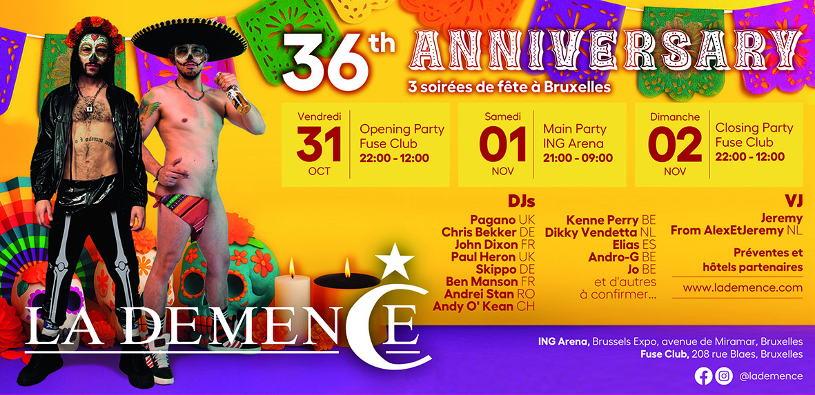 La Démence, la mythique fête gay célèbre cette année ses 36 ans. Du 31 octobre au 2 novembre 2025, vous allez autant sur les dancefloors que dans les darkrooms, laisser s’exprimer sans retenue vos envies, vos corps. La soirée d’ouverture se fait au Fuse, discothèque emblématique de la ville, dans laquelle cette méga soirée attire chaque fois des milliers de clubbers venus de toute l’Europe.